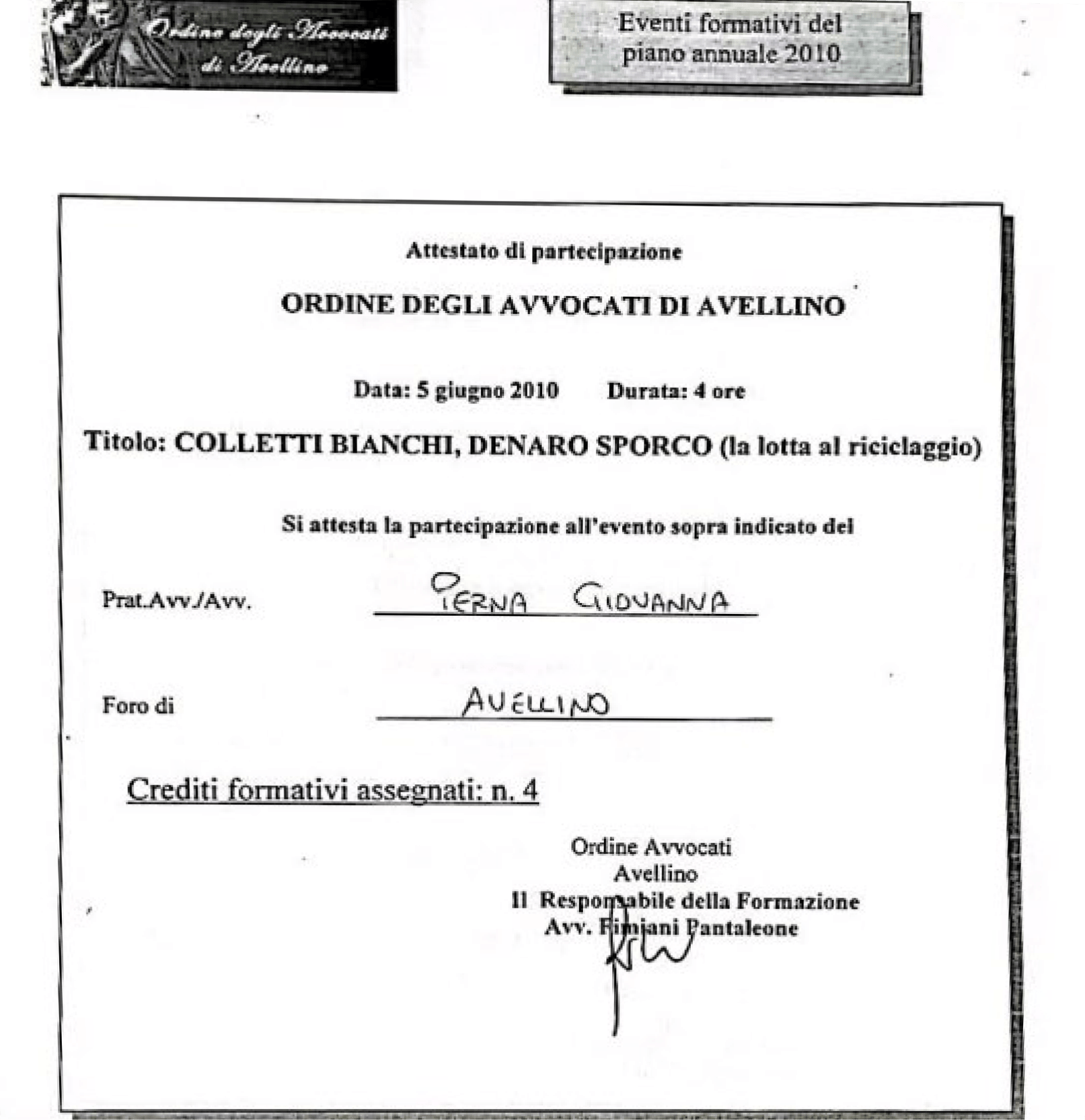 - Maggio 2011 attestato di partecipazione “nuove frontiere per la formazione comune di magistrati e avvocati: tecniche investigative e modalità di accertamento dei reati informatici