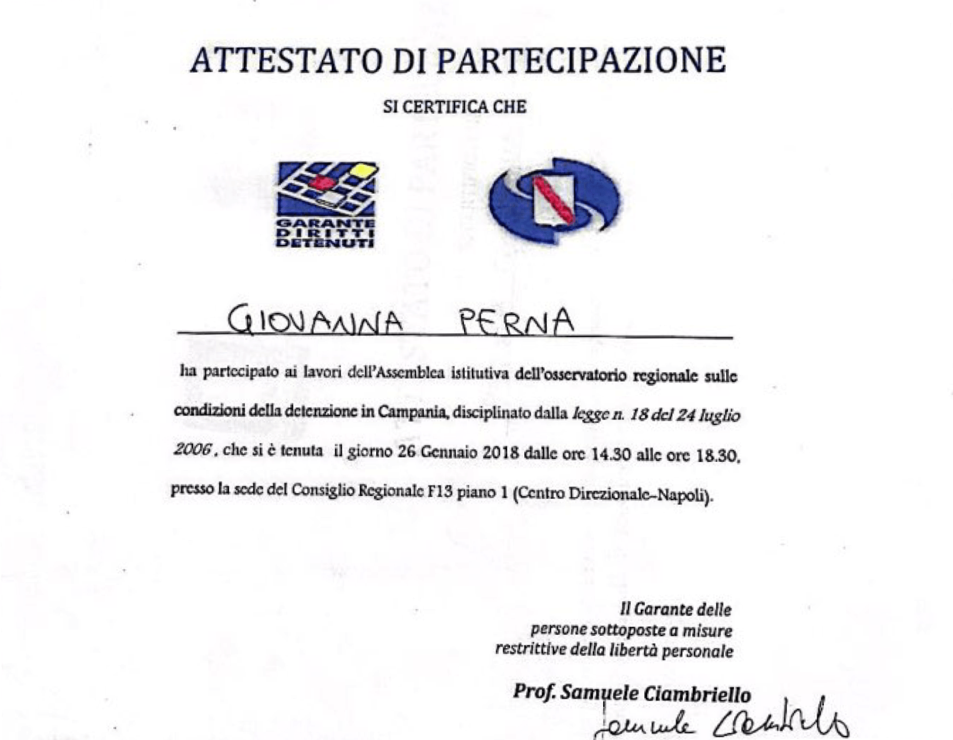 - Ottobre 2010 attestato di partecipazione “emergenza carceri prospettive di riforma legislativa”