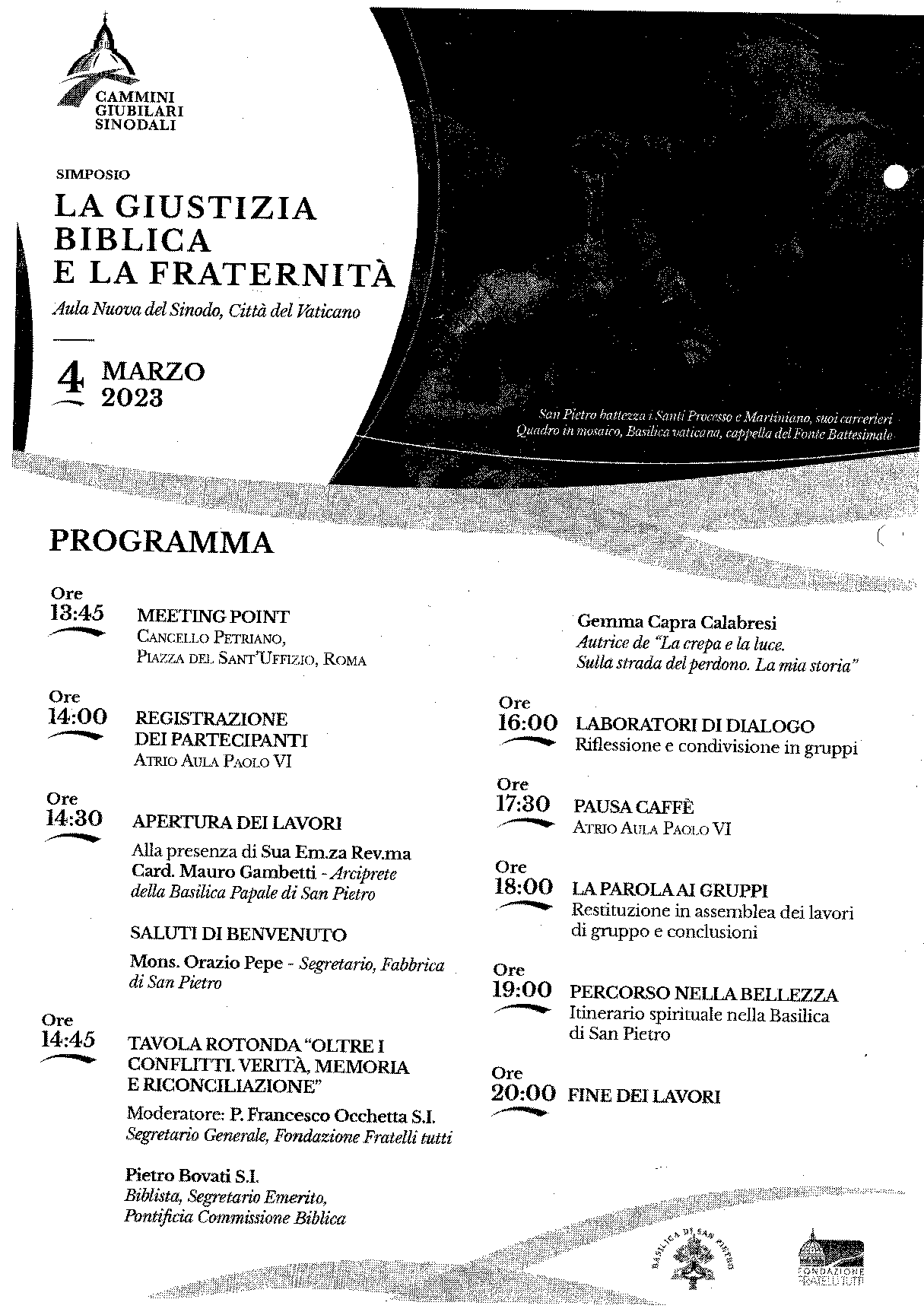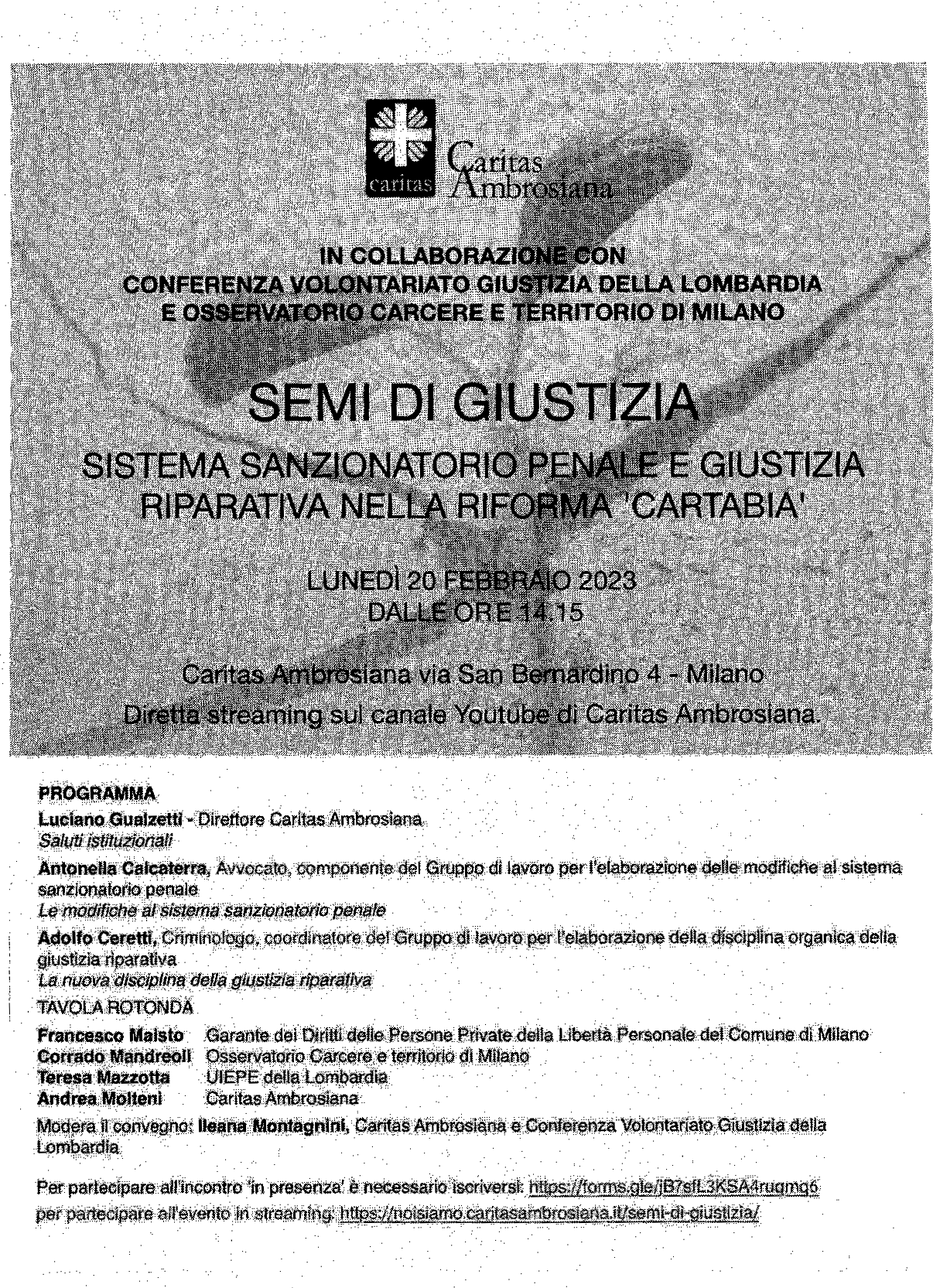 Al prossimo incontro nel luogo sacro a parlare di esperienze di Giustizia Riparativa maturate nell’ambito del progetto Caritas Italiana, appena concluso.